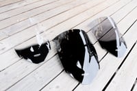 Double Bubble Screen for the EBR 1190 RX fairing. Made by MRA in Germany exclusively for NCCR, carried by Aagaard Moto Foundry in the U.S.A. Available in clear, grey tinted and black. The top quality MRA screen offers better airflow. The clear and smoked (grey) version have has a front a raster print to cover the not so nice looking view of the Instrument cluster cable. What do motorcycle racers like Max Biaggi, Loris Capirossi, Carlos Checa and Andrew Pitt have in common? Their winning machines were equipped with MRA windshields. The German company has its roots in motorcycle racing. Although MRA also produced fairings and racing seats in the first few years, towards the end of the eighties the company specialised in the exclusive development and manufacture of motorcycle windshields. The so-called “Double Bubble Racing Screen”, which almost every motorcycle racer uses today, is a MRA invention. 2014 EBR 1190 RX owned by Kenn Paulson modeling the Black windscreen..